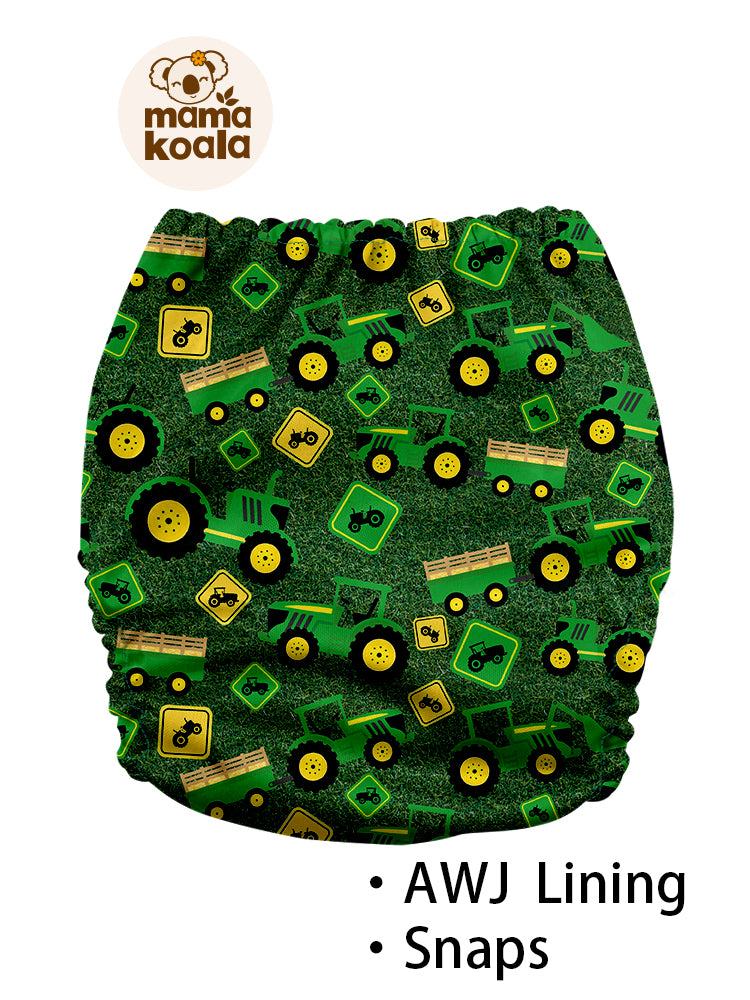 Mama Koala 3.0 cloth diapers are designed to fit babies of all shapes and sizes, with 3x4 rise snaps and cross-over multiple waist snaps adjusting to fit 8-40lbs. That is one size that fits from birth to potty training. Waterproof and breathable TPU outer, improved design of tummy panel for stomach sleepers to "help" with leaks & accidents, super soft and stay dry athletic wicking jersey / Suede CLoth inner protects baby from moisture. The polyester diaper is less bulky under clothing and it is very quick drying.