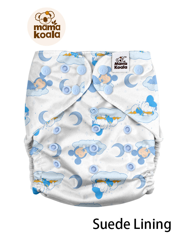 Mama Koala 3.0 cloth diapers are designed to fit babies of all shapes and sizes, with 3x4 rise snaps and cross-over multiple waist snaps adjusting to fit 8-40lbs. That is one size that fits from birth to potty training. Waterproof and breathable TPU outer, improved design of tummy panel for stomach sleepers to "help" with leaks & accidents, super soft and stay dry athletic wicking jersey / Suede CLoth inner protects baby from moisture. The polyester diaper is less bulky under clothing and it is very quick drying.