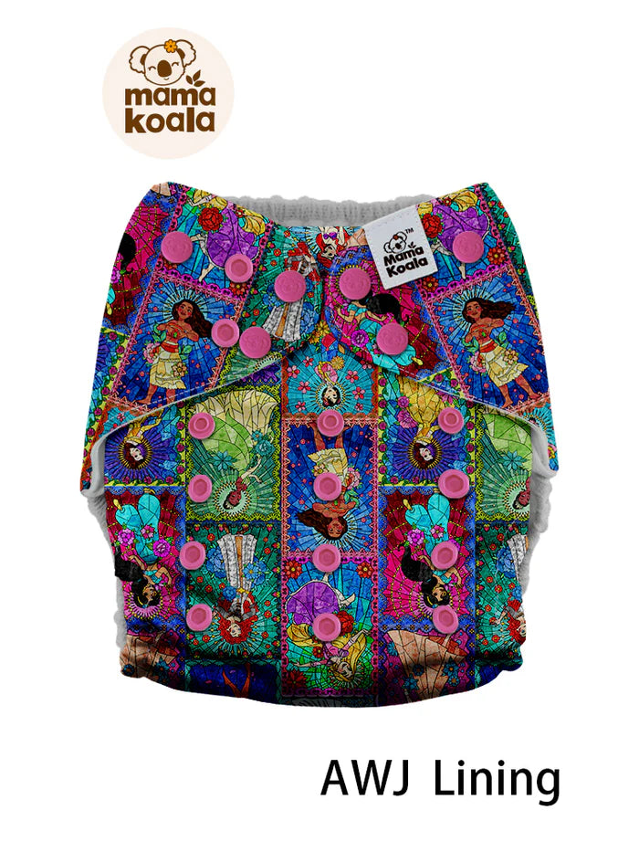 Mama Koala 3.0 cloth diapers are designed to fit babies of all shapes and sizes, with 3x4 rise snaps and cross-over multiple waist snaps adjusting to fit 8-40lbs. That is one size that fits from birth to potty training. Waterproof and breathable TPU outer, improved design of tummy panel for stomach sleepers to "help" with leaks & accidents, super soft and stay dry athletic wicking jersey / Suede CLoth inner protects baby from moisture. The polyester diaper is less bulky under clothing and it is very quick drying.