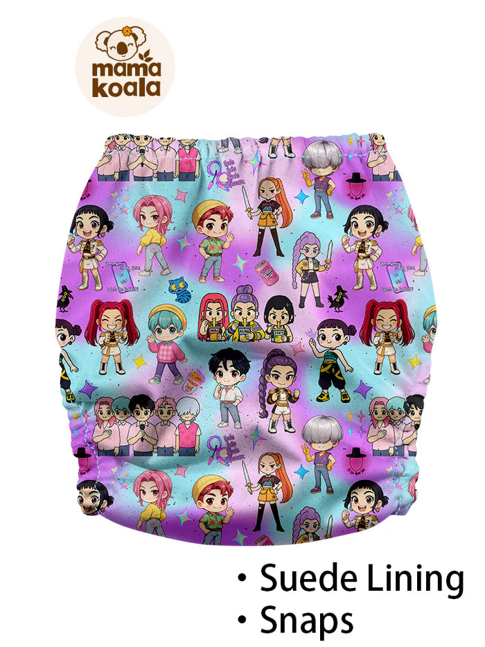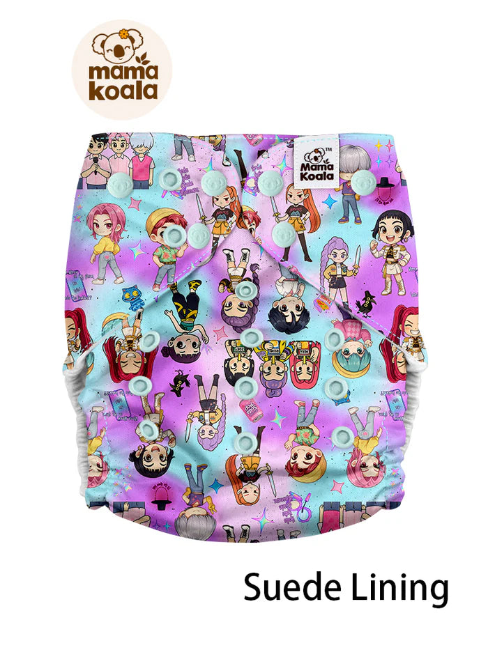 Mama Koala 3.0 cloth diapers are designed to fit babies of all shapes and sizes, with 3x4 rise snaps and cross-over multiple waist snaps adjusting to fit 8-40lbs. That is one size that fits from birth to potty training. Waterproof and breathable TPU outer, improved design of tummy panel for stomach sleepers to "help" with leaks & accidents, super soft and stay dry athletic wicking jersey / Suede CLoth inner protects baby from moisture. The polyester diaper is less bulky under clothing and it is very quick drying.